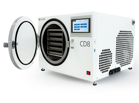 Despite its compact size, the CryoDry® CD8 offers versatility in the types of materials that can be freeze dried. From food and beverages to environmental and biological samples, the CryoDry® CD8 can handle a range of applications. Additionally, the CryoDry CD8 provides a 8kg capacity for batch processing, allowing for efficient and timely freeze drying.
