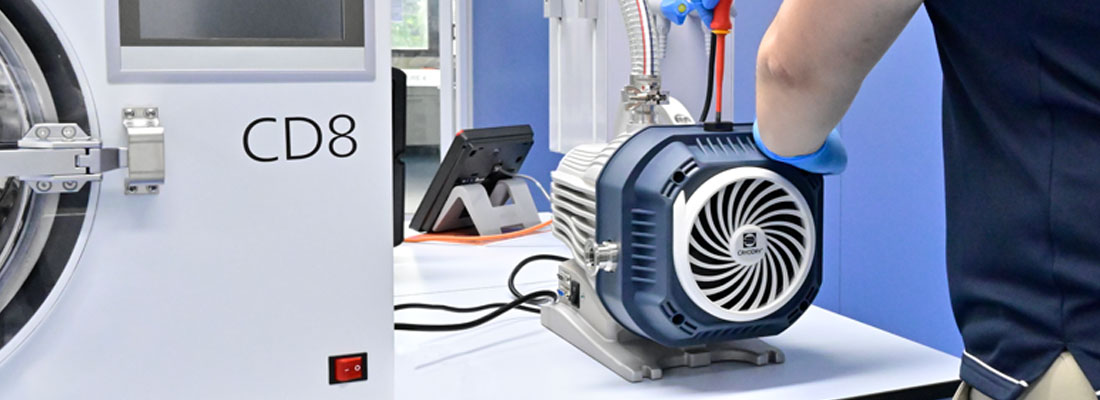 The CryoDry® PSP12 Scroll Vacuum Pump is an efficient and reliable pump for your freeze drying needs. It boasts a powerful pumping speed of 12 m3/h and ultimate vacuum of 8×10-3 mbar, making it a great replacement for rotary vane pumps.